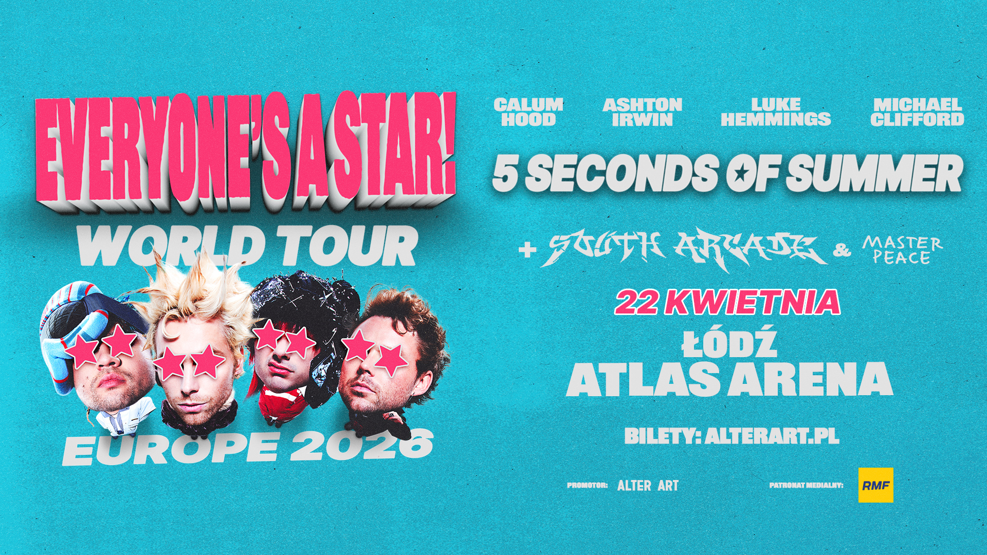 Australijska formacja 5 Seconds Of Summer zawita do Polski w ramach promocji swojego najnowszego albumu „EVERYONE’S A STAR!”. Koncert odbędzie się 22 kwietnia 2026 roku w Atlas Arenie w Łodzi. To niepowtarzalna okazja, by na żywo usłyszeć największe hity zespołu oraz utwory z nowej płyty. Bilety na wydarzenie cieszą się dużym zainteresowaniem, a liczba miejsc jest ograniczona. Fani mogą spodziewać się wyjątkowego show pełnego energii i niespodzianek.