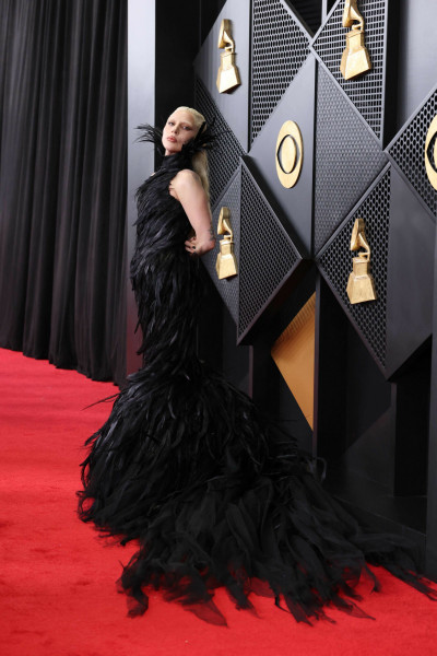 Lady Gaga, jedna z największych ikon muzyki i mody, przyciągnęła uwagę w czarnej, ozdobionej piórami sukni Matières Fécales, która wyraźnie nawiązywała do estetyki jej ostatniego albumu, za którą otrzymała nagrodę w kategorii muzyki pop.